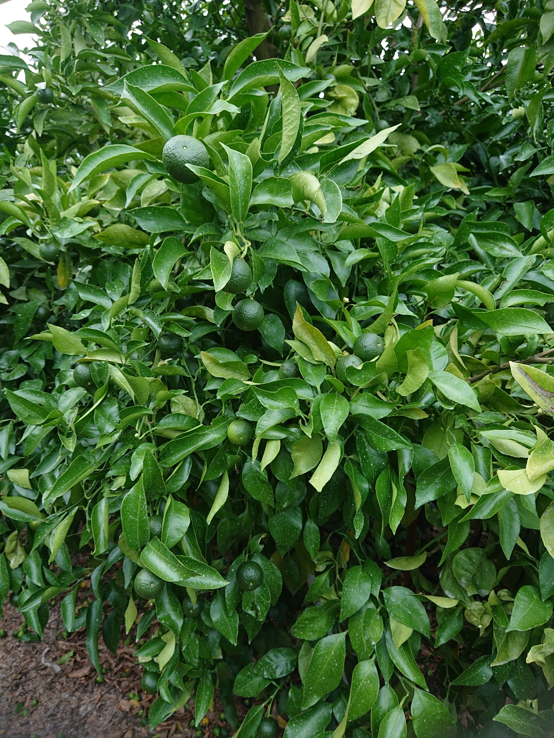柑橘園では、摘果作業の最盛期(といっても9月末まで続きます)です。